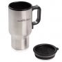 Кружка имеет двойные стенки, внутренняя сделана из пищевого пластика, а наружная из нержавеющей стали. Крышка кружки герметична и оснащена отрывающимся окошком-поилкой, позволяющим безопасно пить во время движения.
